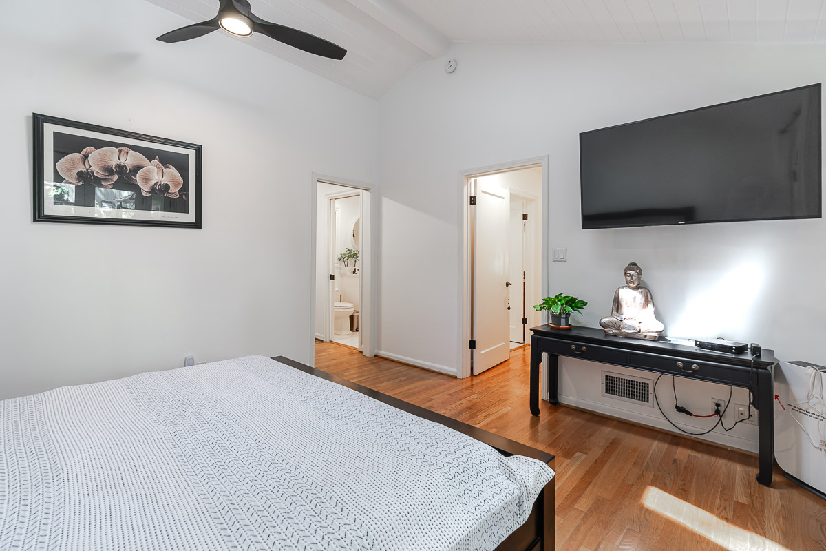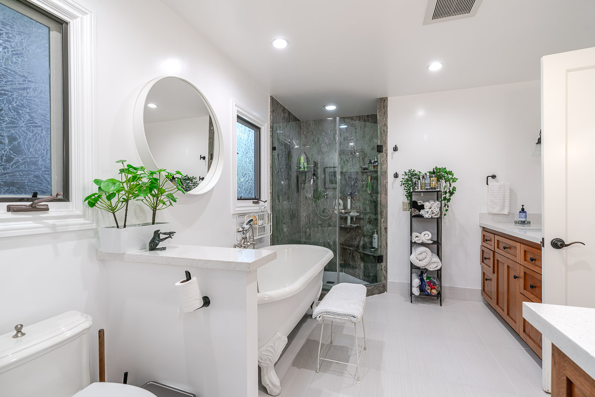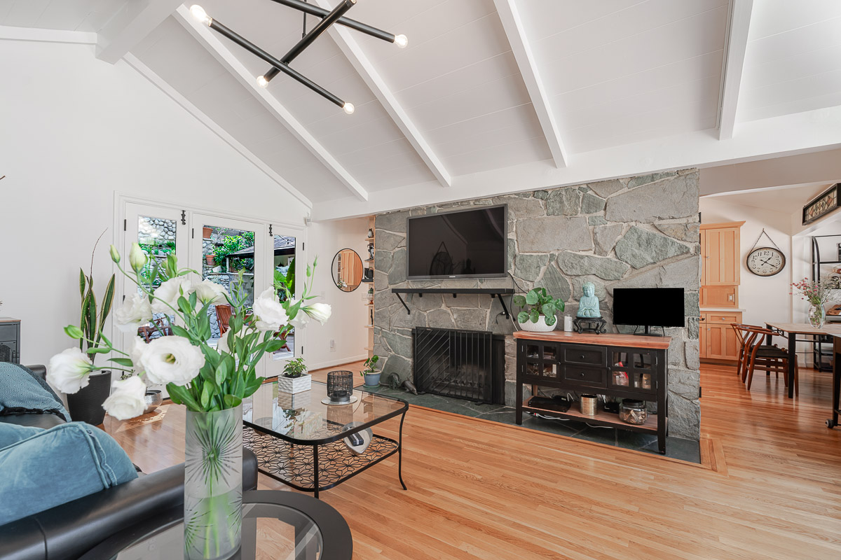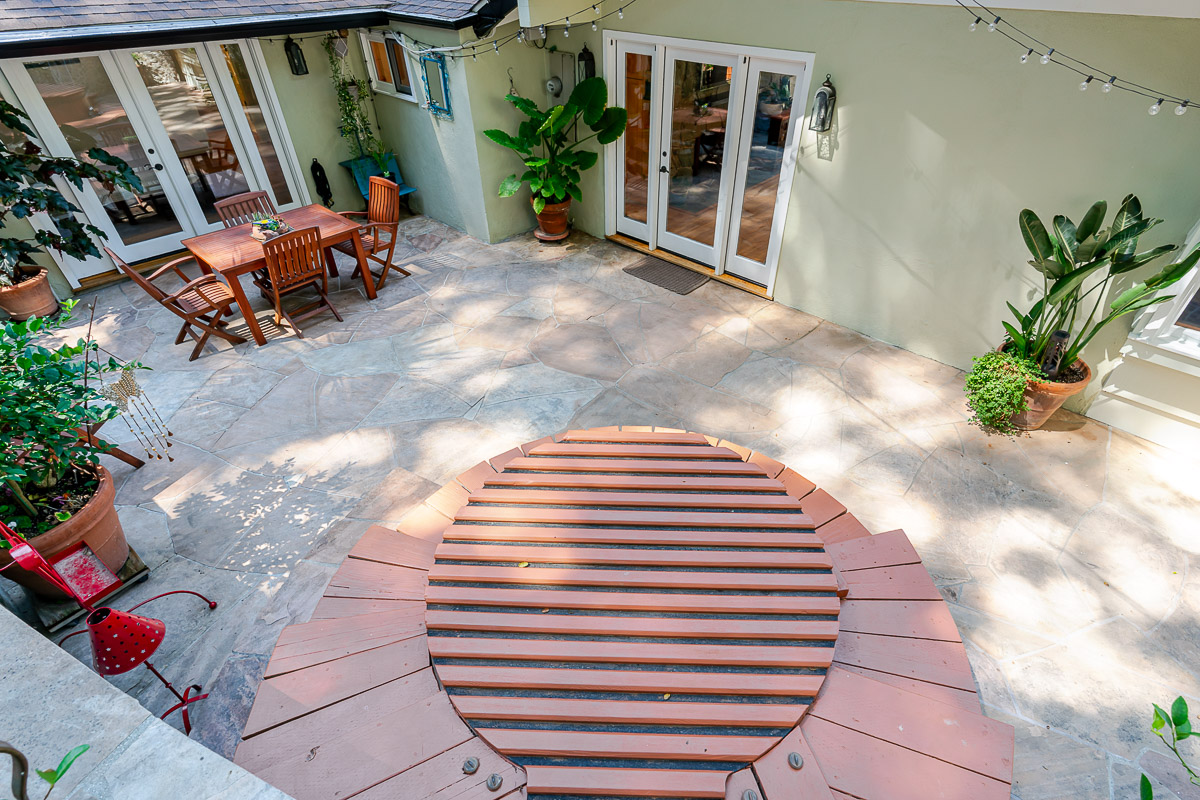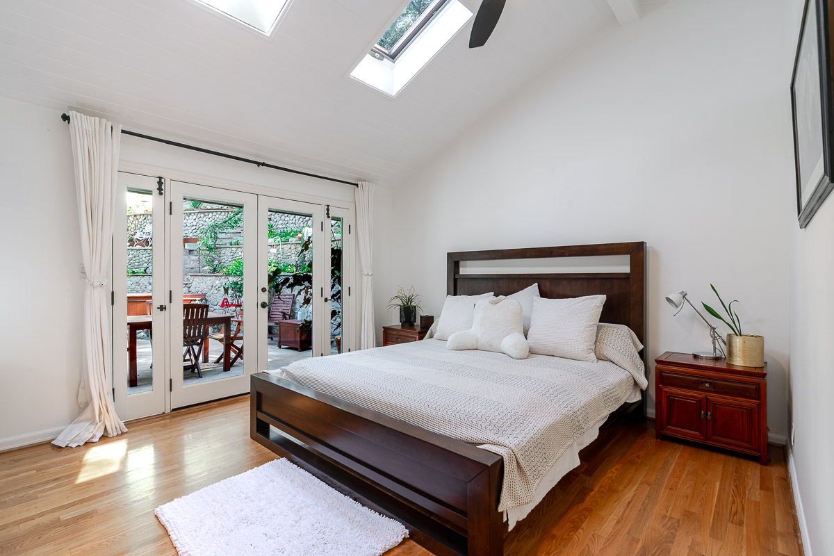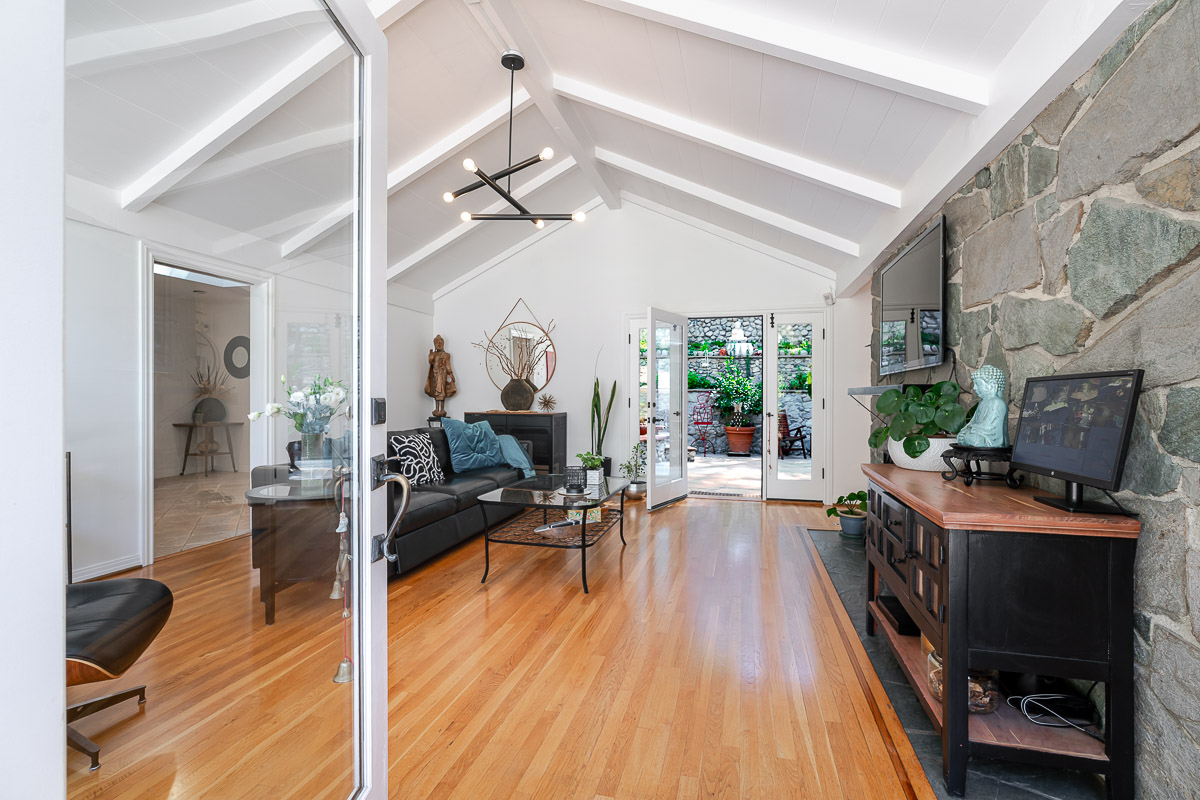 Welcome to 5220 Palm Drive, a beautiful Ranch-style home with Mid-Century influences, nestled in the serene hills above La Cañada Flintridge. Built in 1955, this thoughtfully designed residence offers 3 bedrooms, 2 bathrooms, and 1,656 square feet of light-filled living space on a private 8,361 square foot lot. A winding pathway leads to a spacious flagstone patio, ideal for alfresco dining and entertaining. Inside, the fabulous floor plan features vaulted ceilings, skylights, hardwood floors, and abundant storage throughout. The living room and primary suite both open through French doors to a tranquil rear patio with a built-in hot tub, creating a seamless indoor-outdoor flow. The primary suite is a true retreat, complete with a large walk-in closet, claw foot soaking tub, and oversized shower. The chef’s kitchen is equipped with custom Alder cabinets, stainless steel appliances, a double oven, double dishwasher, farm sink, and a large island with prep sink—perfect for everyday living and entertaining. Outdoors, the beautifully landscaped grounds showcase mature trees and vibrant plantings, including two lemon trees, a Fuji apple tree, a Key lime tree, and a pomegranate tree. This lush setting provides an inviting backdrop for gatherings or peaceful relaxation. Additional highlights include a detached garage, expansive patios, and a setting that offers both privacy and serenity—an ideal retreat in one of La Cañada’s most desirable neighborhoods.